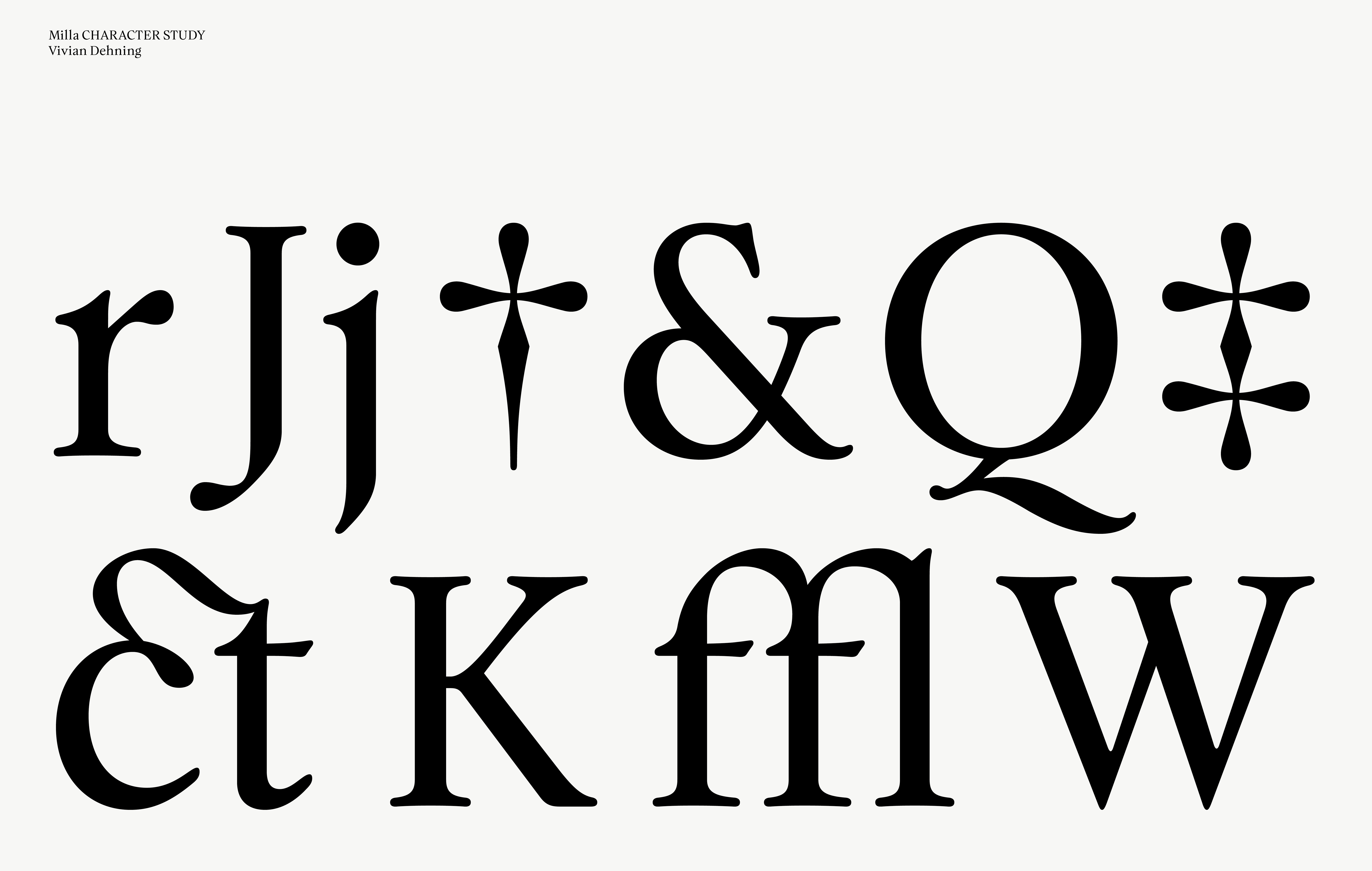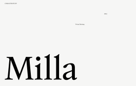 Milla is composed of classical letterforms, blended with personal and thoroughly considered details intrinsic to handwriting, letter-pressed type and botanical characteristics. Made to be legible for large and small type sizes and rich use cases. It emphasises a strong, functional glyph set that covers the major Latin languages and features a set of succinct ligatures.